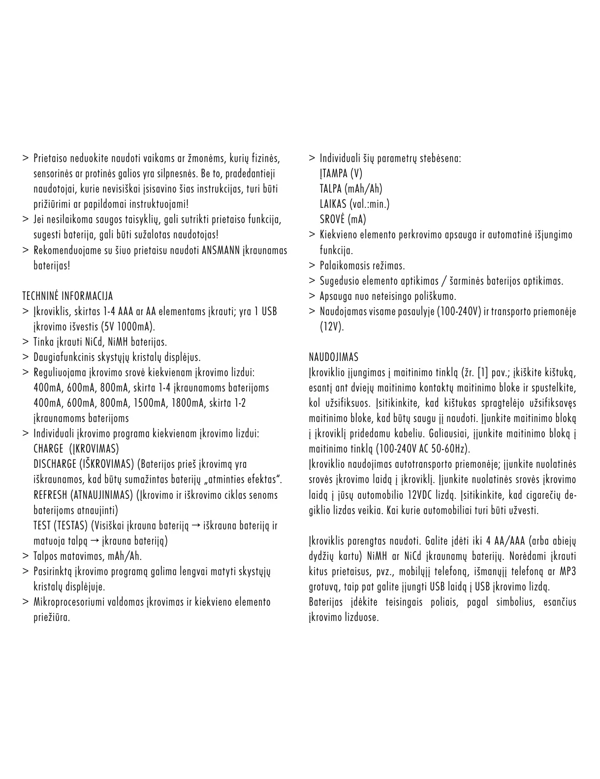 > Rekomenduojame su šiuo prietaisu naudoti ANSMANN įkraunamas