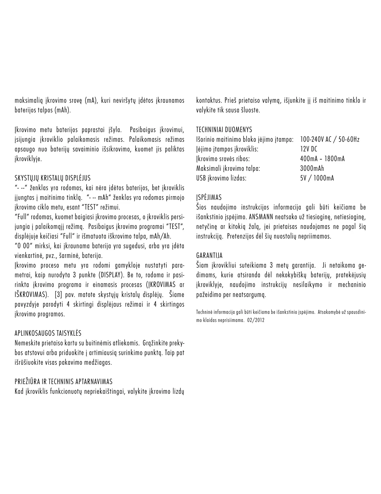 išankstinio įspėjimo. ANSMANN neatsako už tiesioginę, netiesioginę,