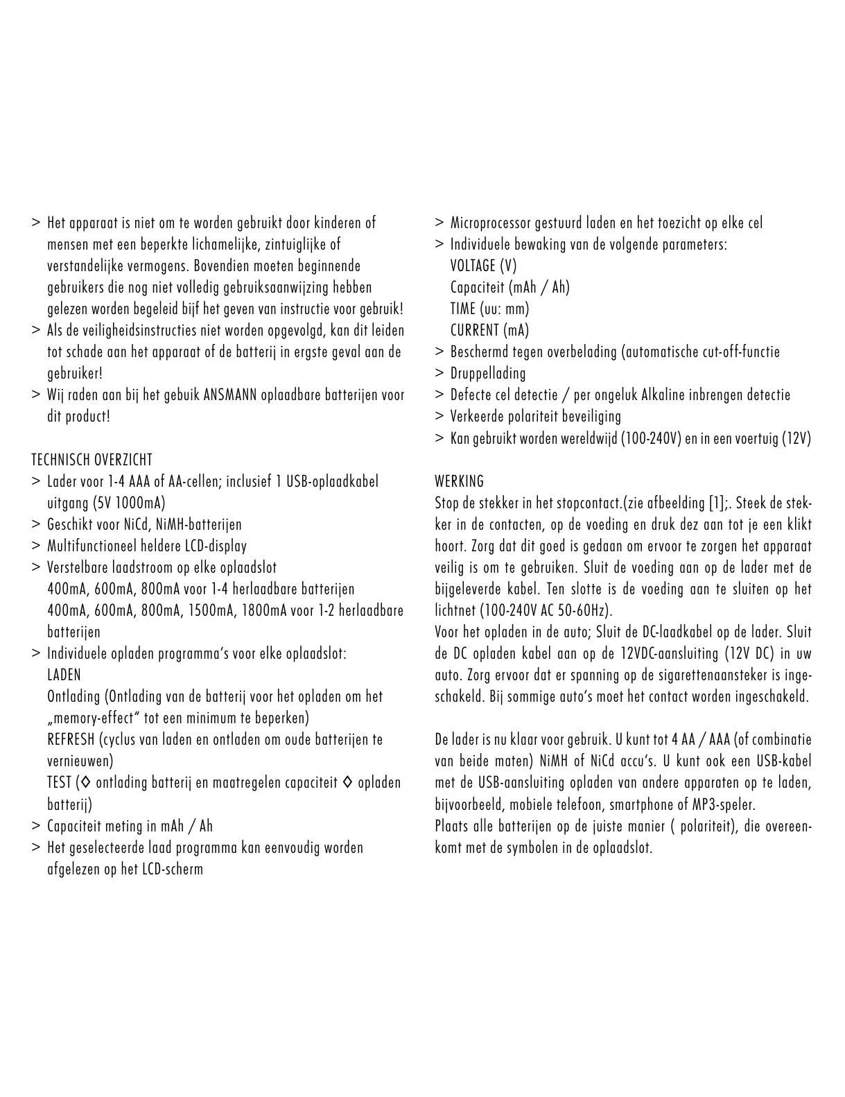 > Geschikt voor NiCd, NiMH-batterijen