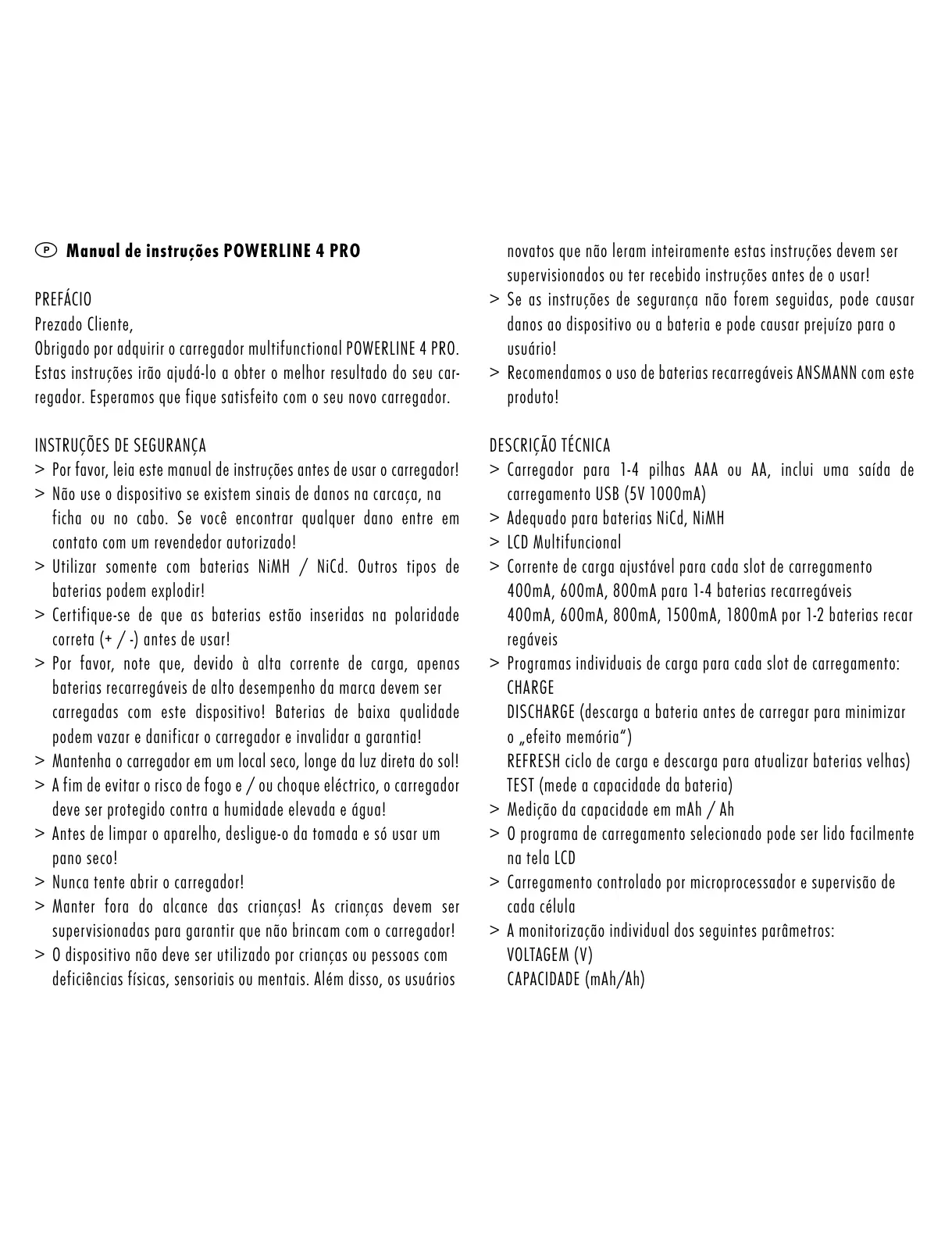 Obrigado por adquirir o carregador multifunctional POWERLINE 4 PRO.