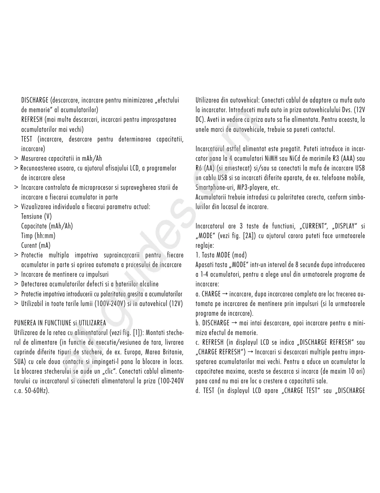 d. TEST (in displayul LCD apare „CHARGE TEST“ sau „DISCHARGE