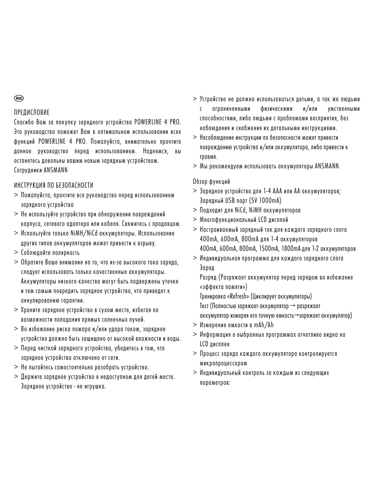 Спасибо Вам за покупку зарядного устройства POWERLINE 4 PRO.