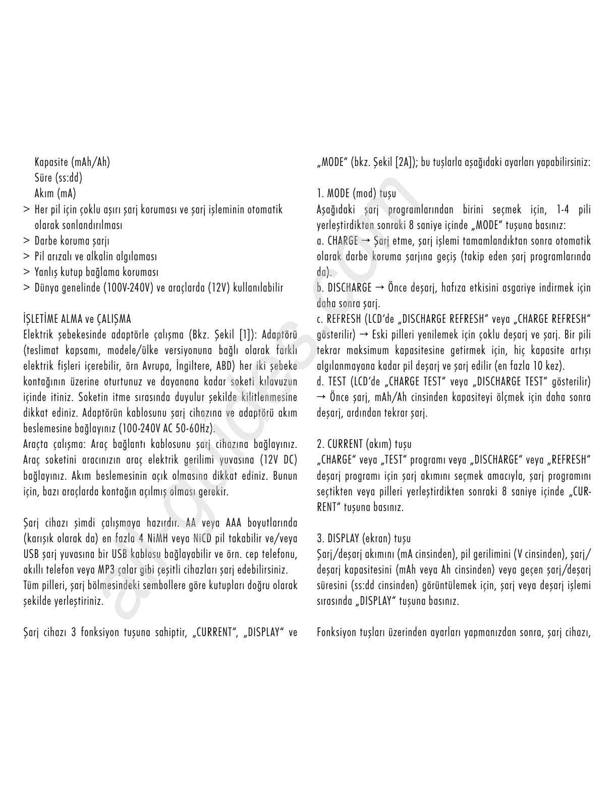 gösterilir) → Eski pilleri yenilemek için çoklu deşarj ve şarj. Bir pili