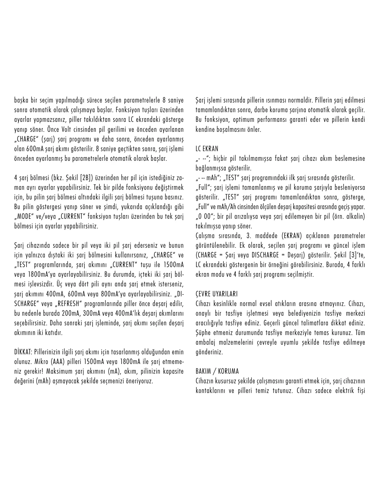 DİKKAT: Pillerinizin ilgili şarj akımı için tasarlanmış olduğundan emin