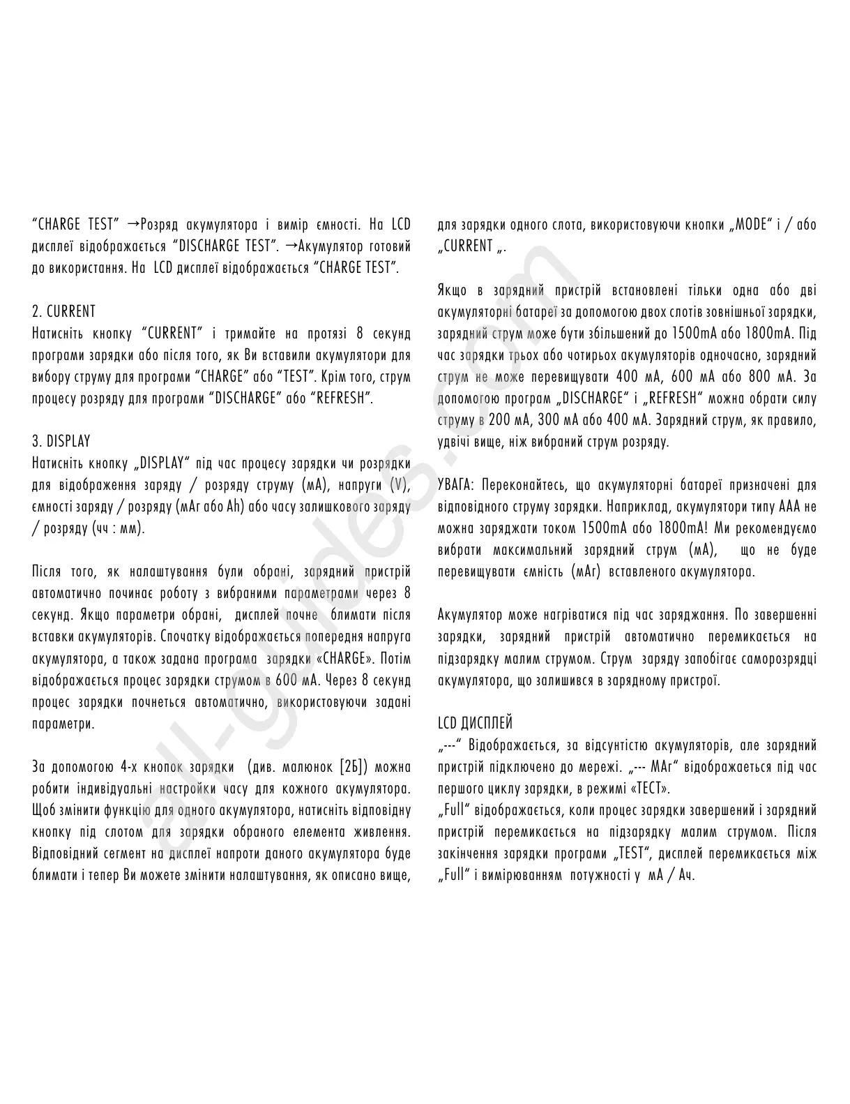 Натисніть кнопку „DISPLAY“ під час процесу зарядки чи розрядки