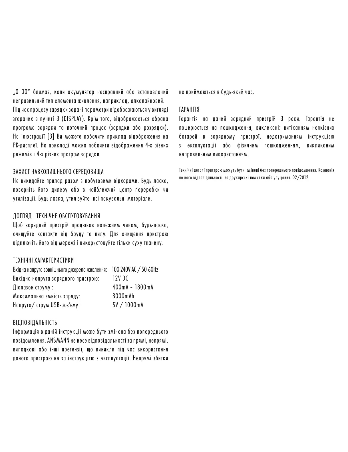 повідомлення. ANSMANN не несе відповідальності за прямі, непрямі,