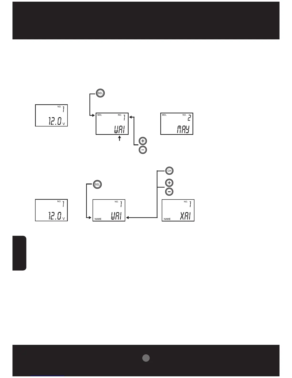 1. Appuyez sur bouton « SEL » pour sélectionner la fonction désirée NAME (voir ci-dessus)