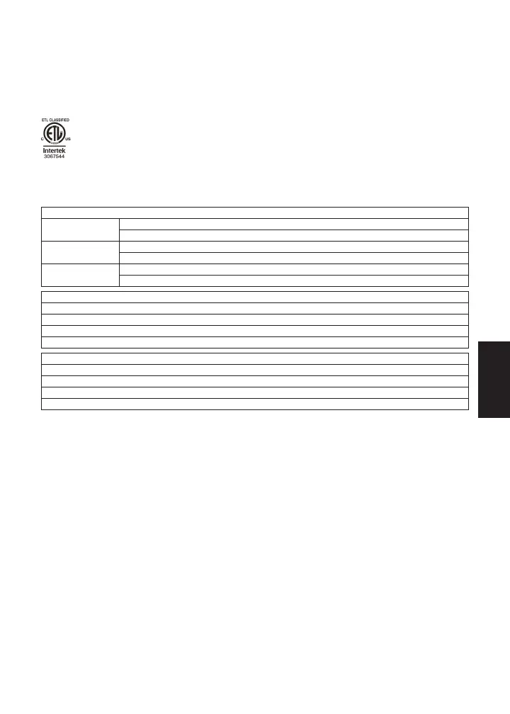 Per quanto riguarda il pericolo di scosse elettriche, incendio e rischi meccanici, questo dispositivo classicato ETL è