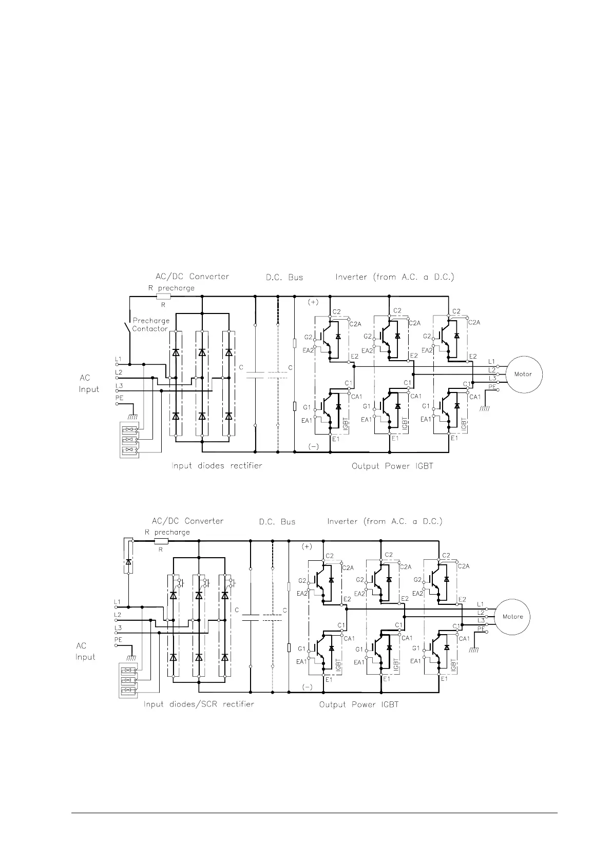 Note: precharge contactor in some sizes is on negative DC supply – refer to power schematics in Appendix A.