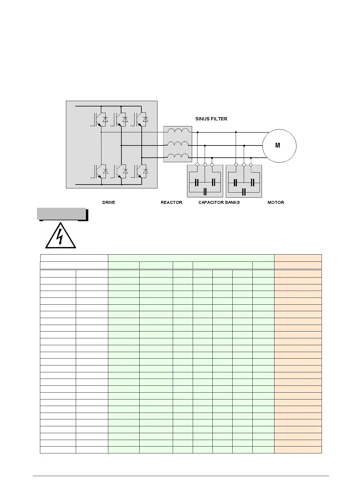 filter at inverter output (see the capacity values of the working diagram enclosed to the supply) is less than