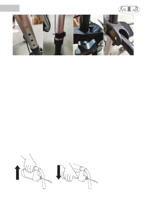 2.Il funzionamento dei freni deve essere vericato rando verso l’alto le leve come mostrato