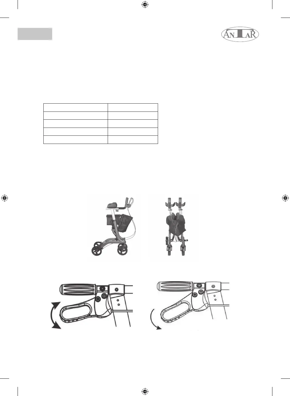 il trasporto. Il deambulatore è dotato di ruote anteriori piroettanti e posteriori non piroettanti con freno e pinza