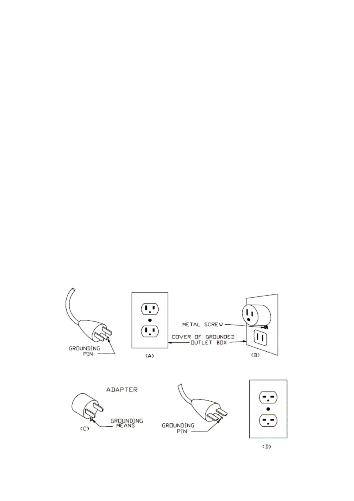 from the adaptor must be connected to a permanent ground such as a properly grounded outlet box cover.