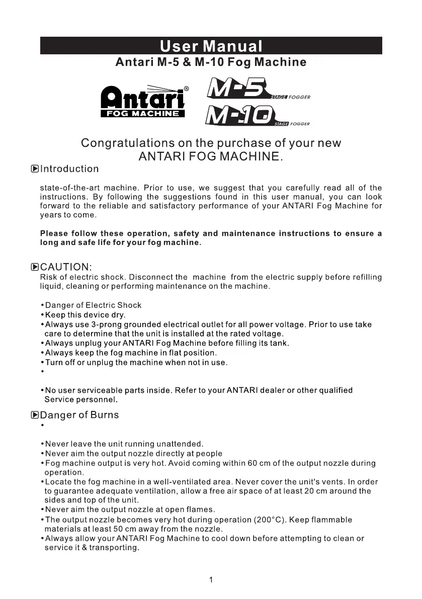 Thank you for choosing Antari Fog machine. You now own a rugged and powerful