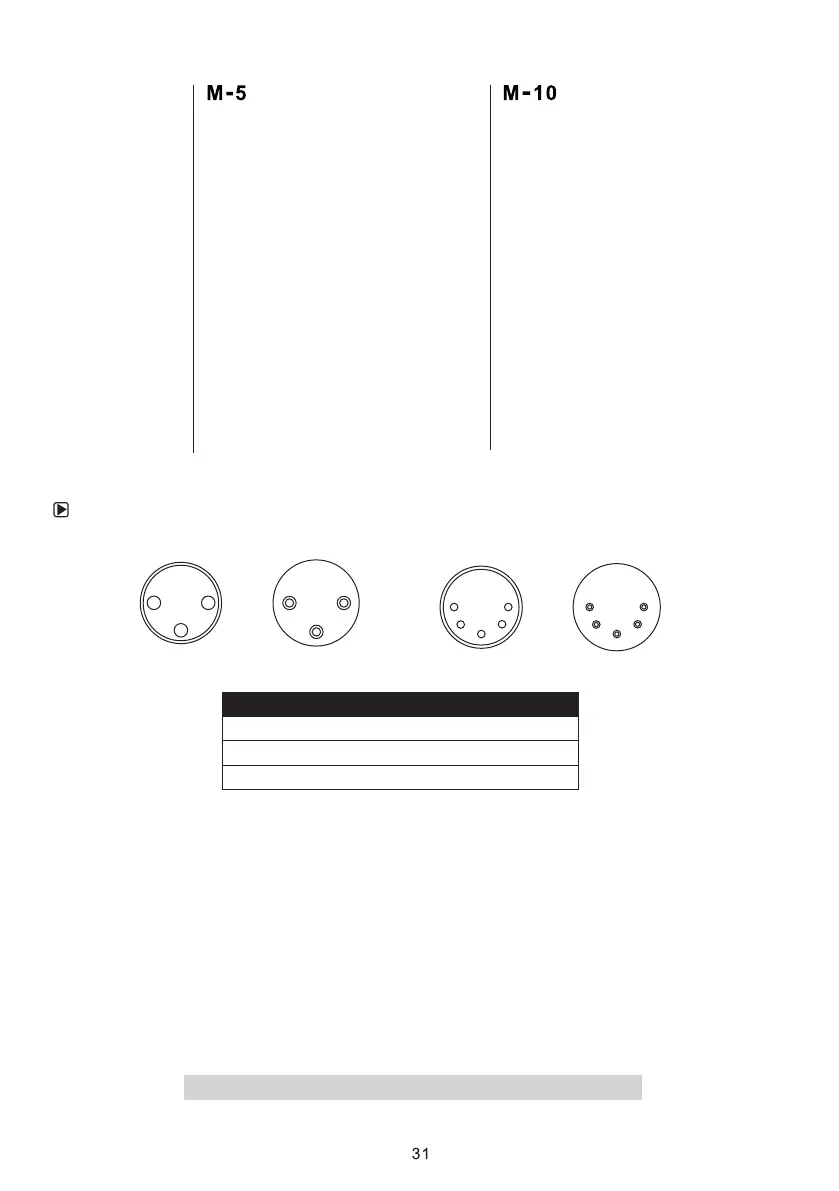 本機提供3 Pin或5 P IN XLR的DMX連 接。 下方 為Pin的接 點說 明: