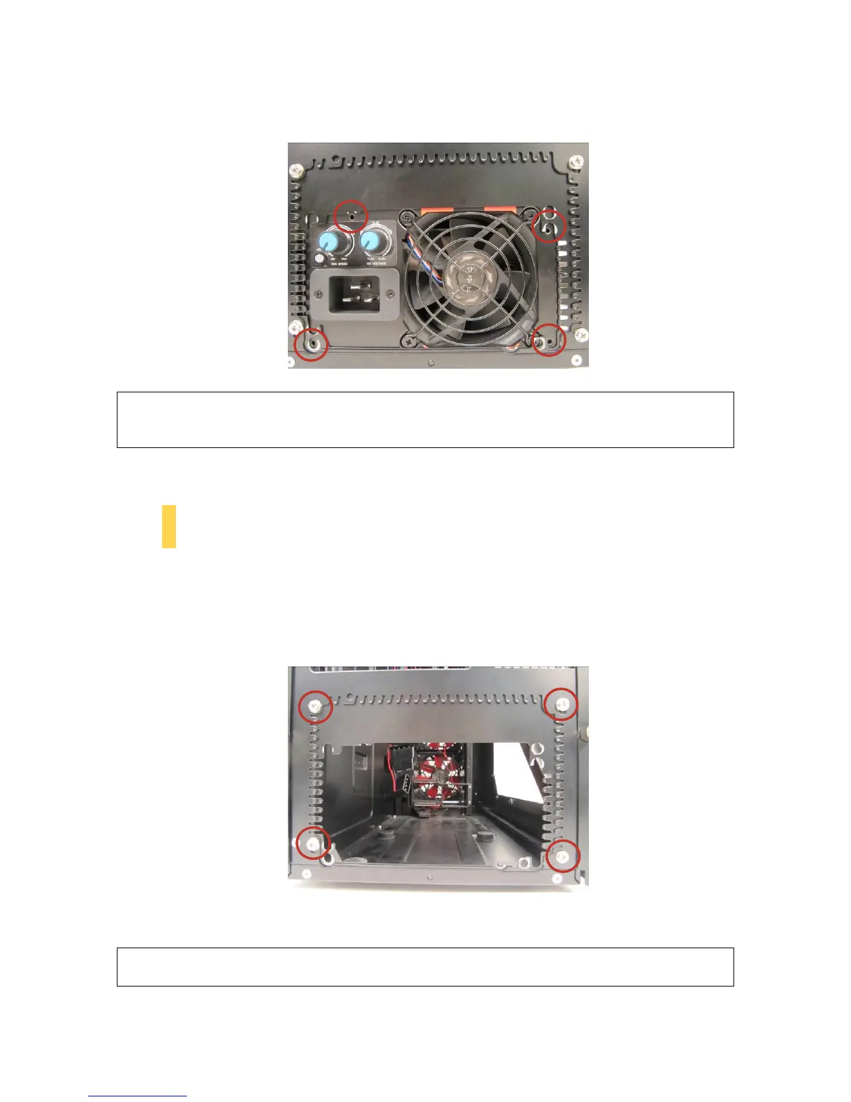Note: Power supplies with fans on the bottom of the power supply will need to be mounted so