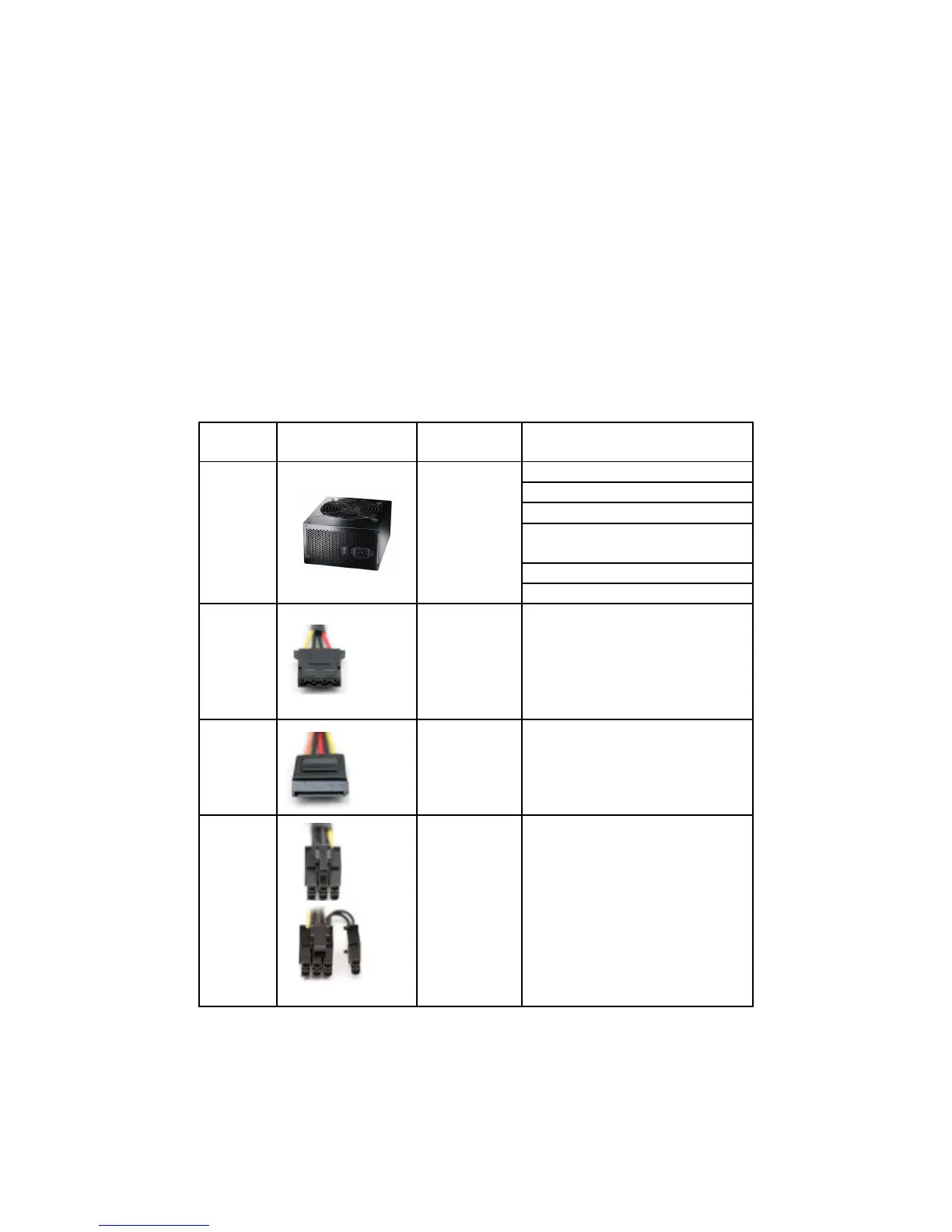 Power Connectors Part Name Description