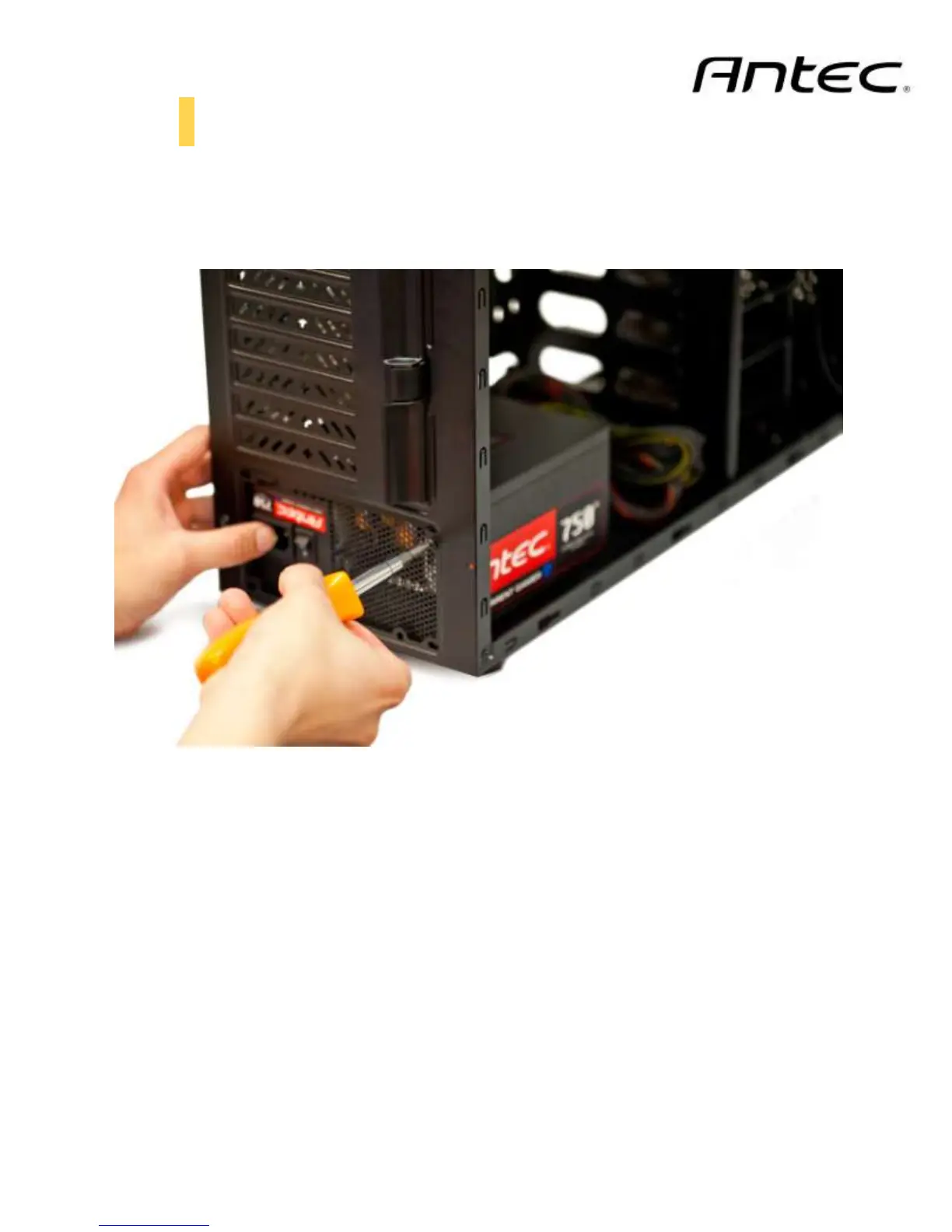 1. With the case upright, place the power supply in the case and align the rear of the unit with the