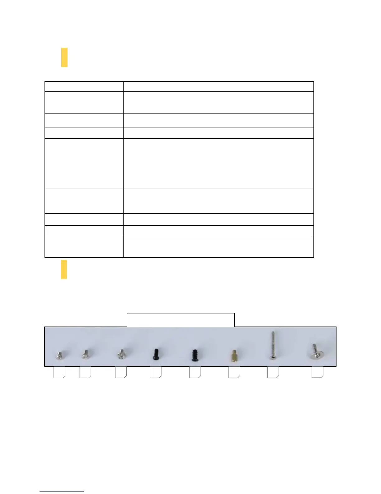 screws. An inventory of all screws and intended usage and quantity is provided here: