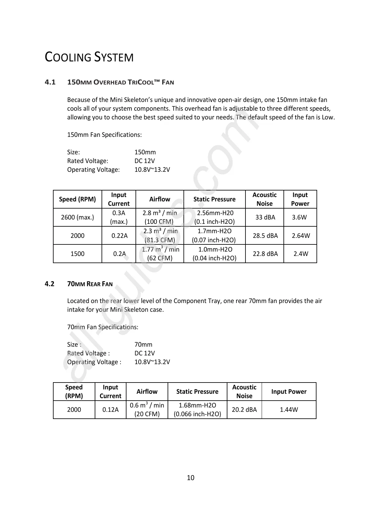 Because of the Mini Skeleton’s unique and innovative open-air design, one 150mm intake fan