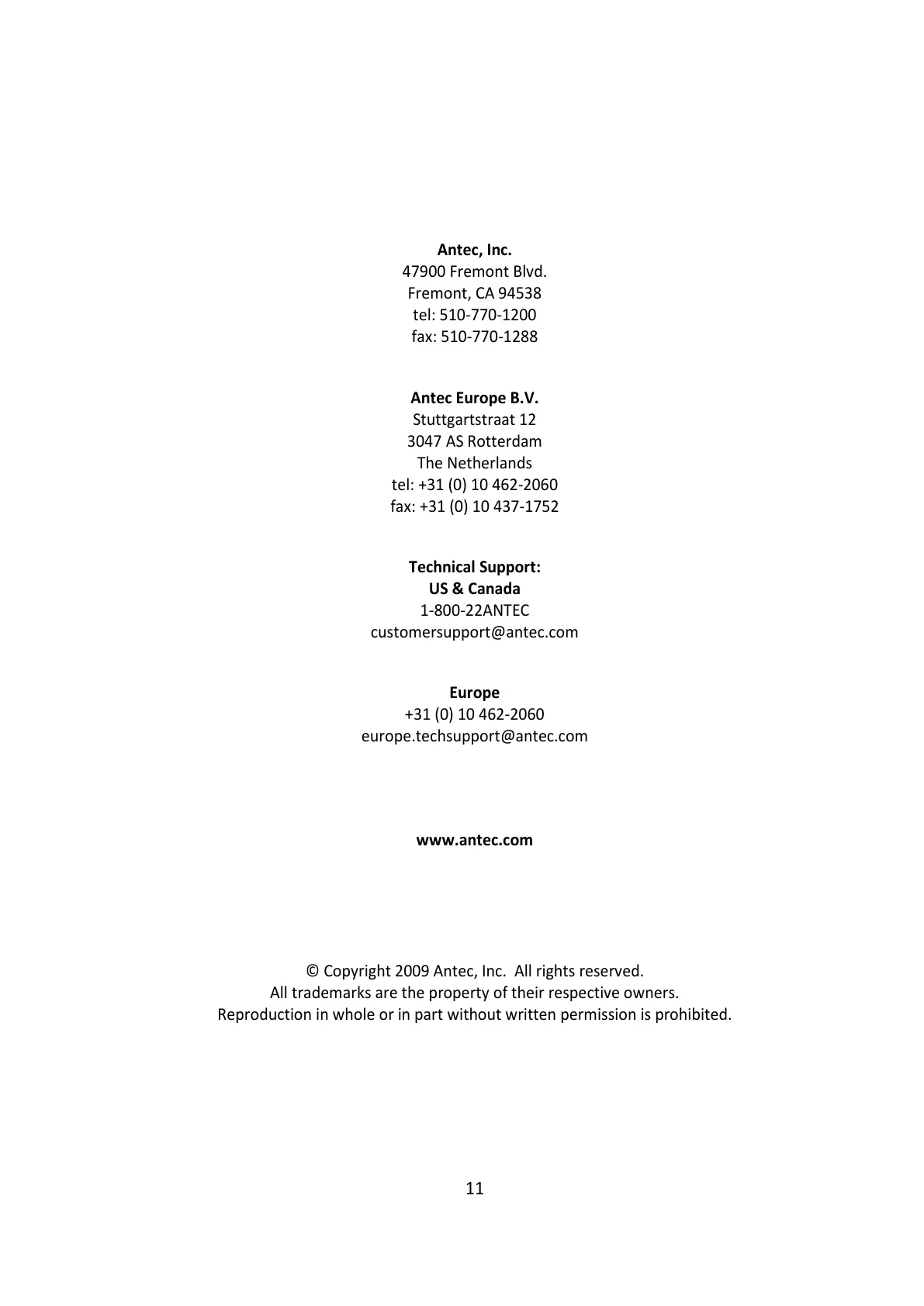 © Copyright 2009 Antec, Inc. All rights reserved.