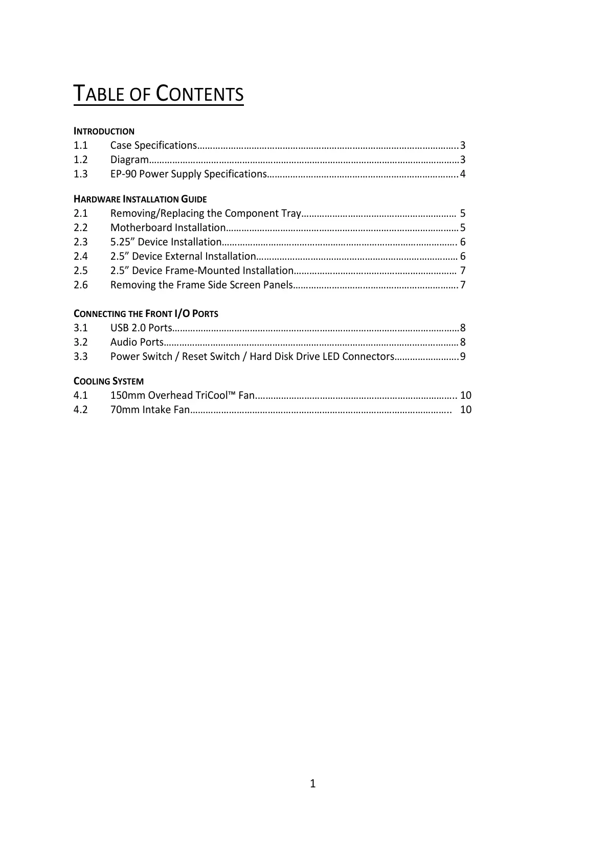 4.2 70mm Intake Fan……………………………………………………………………………………….. 10