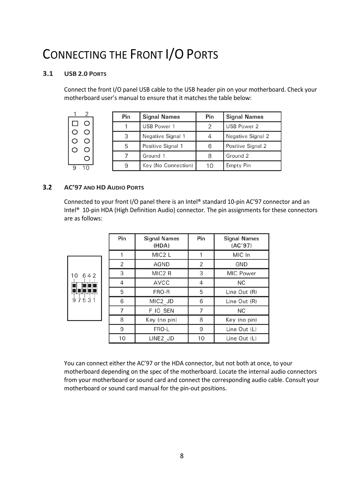 Connected to your front I/O panel there is an Intel® standard 10-pin AC’97 connector and an