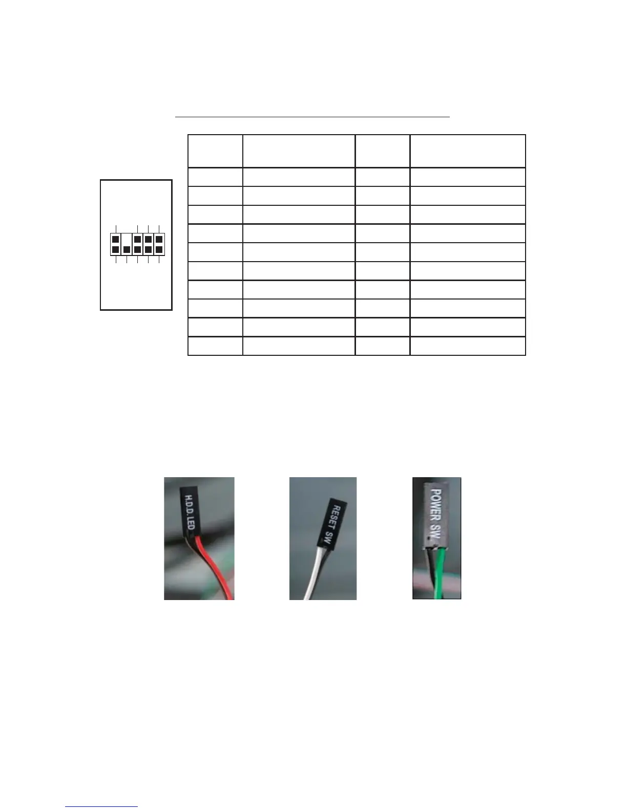 power, reset, and HDD LED activity. Attach these to the corresponding connectors