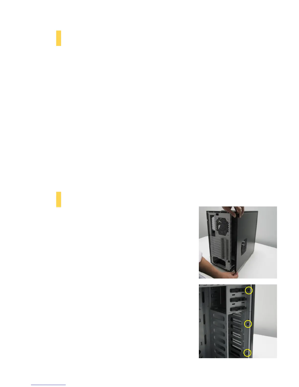 Put the case upright on a flat, stable surface so that the rear panel (power supply and expansion