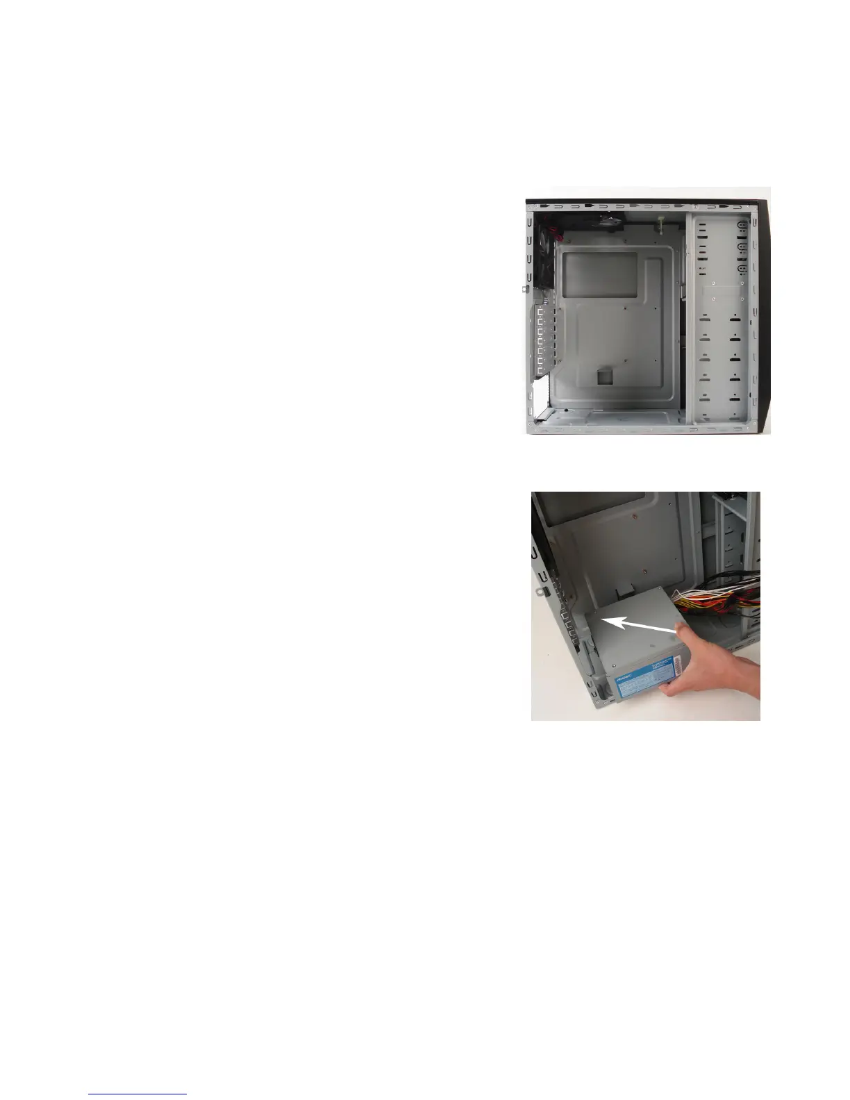 2. Push the power supply to the back of the case and align