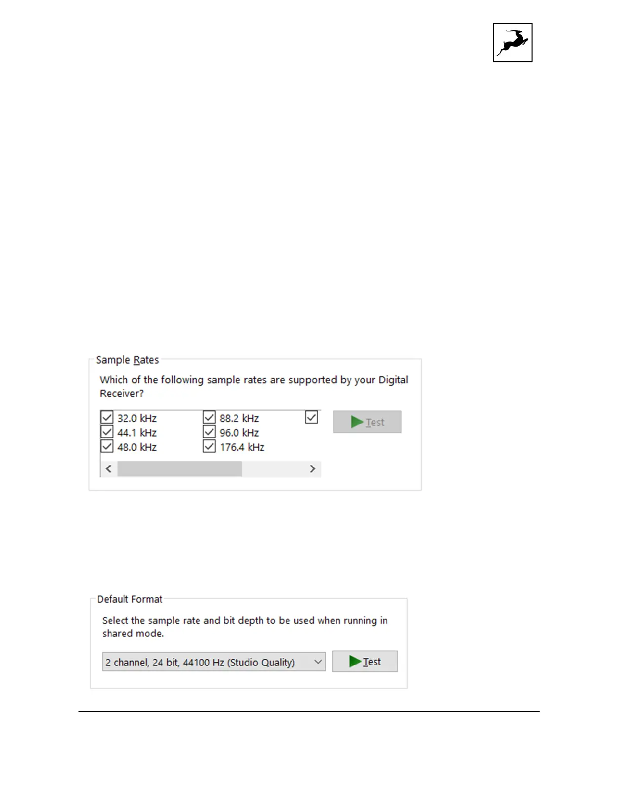 3. [サポートされている形式] タブに⼊り、使⽤可能なすべてのサンプルレートの横にチェックマークを付けま