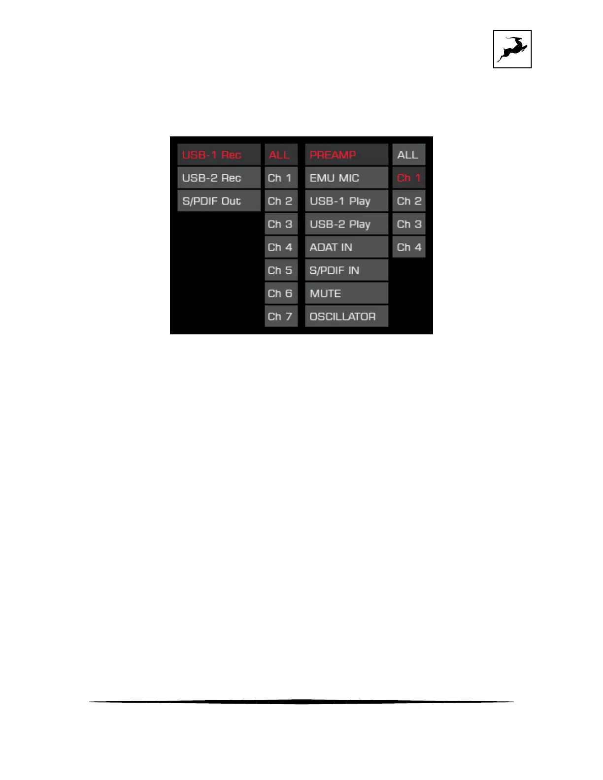 Press the 'Antelope button' to exit the Control Menu.