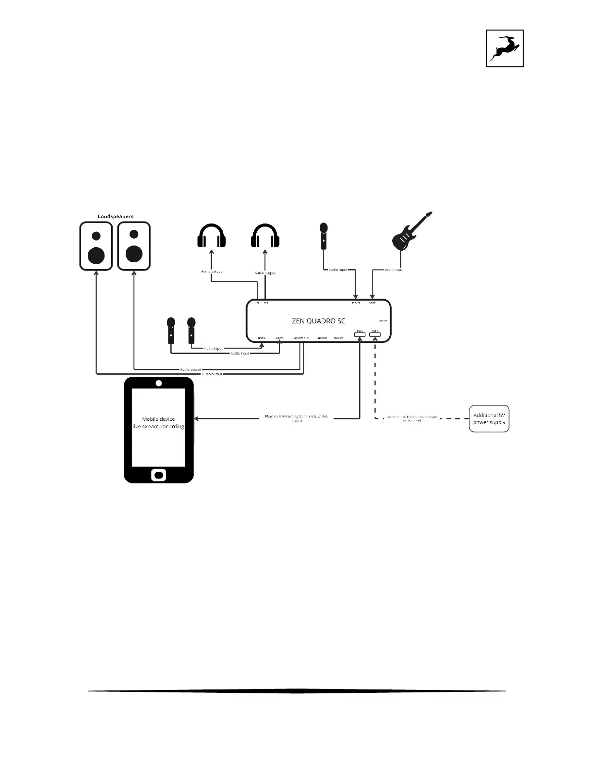 The Zen Quadro SC can work as a regular audio interface by using either of the ports. The