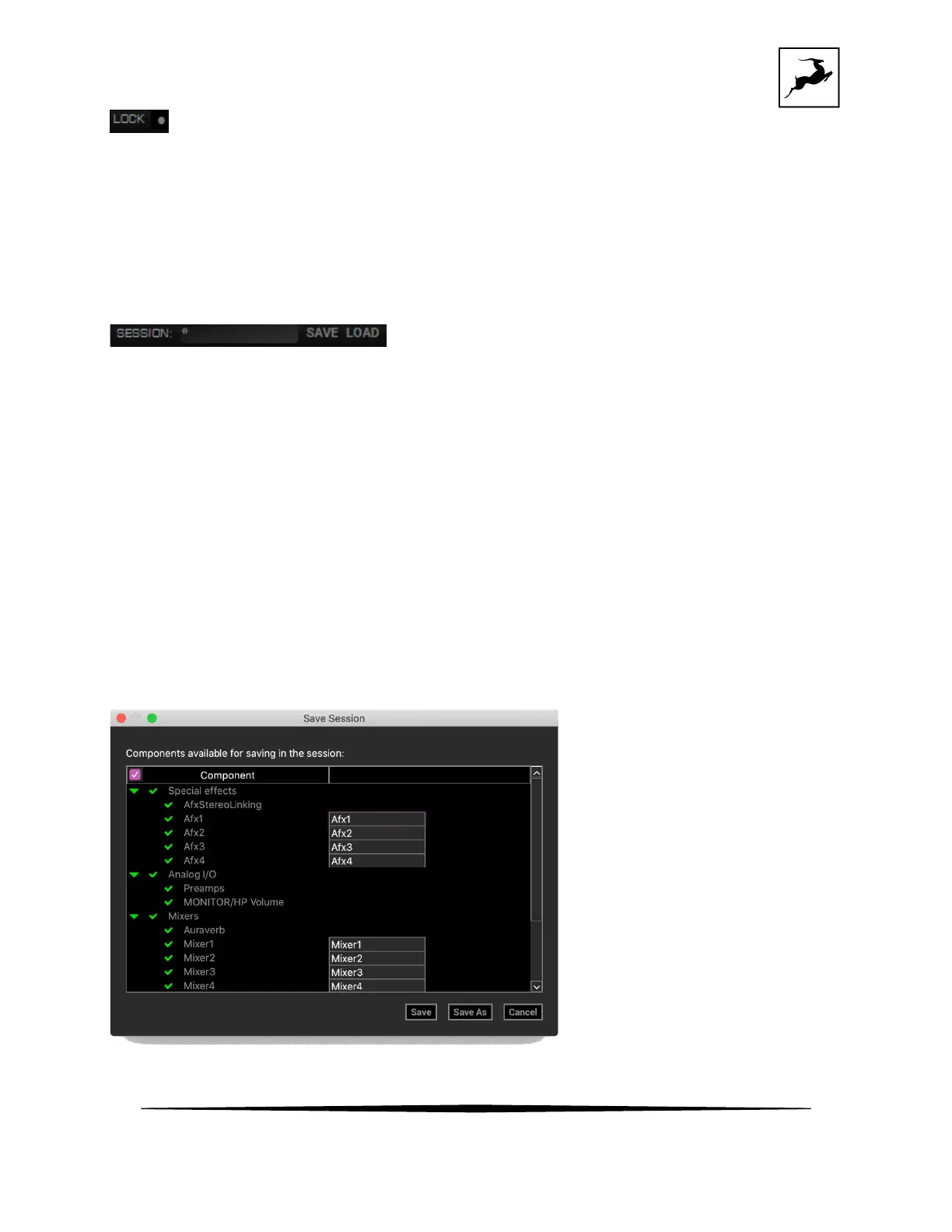 'Save' and 'Load' buttons to save and load Session files (*.as).
