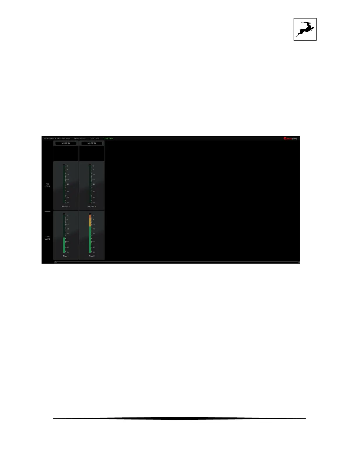 USB 2 I/O' view provides an overview of audio going in and out of the device connected to the