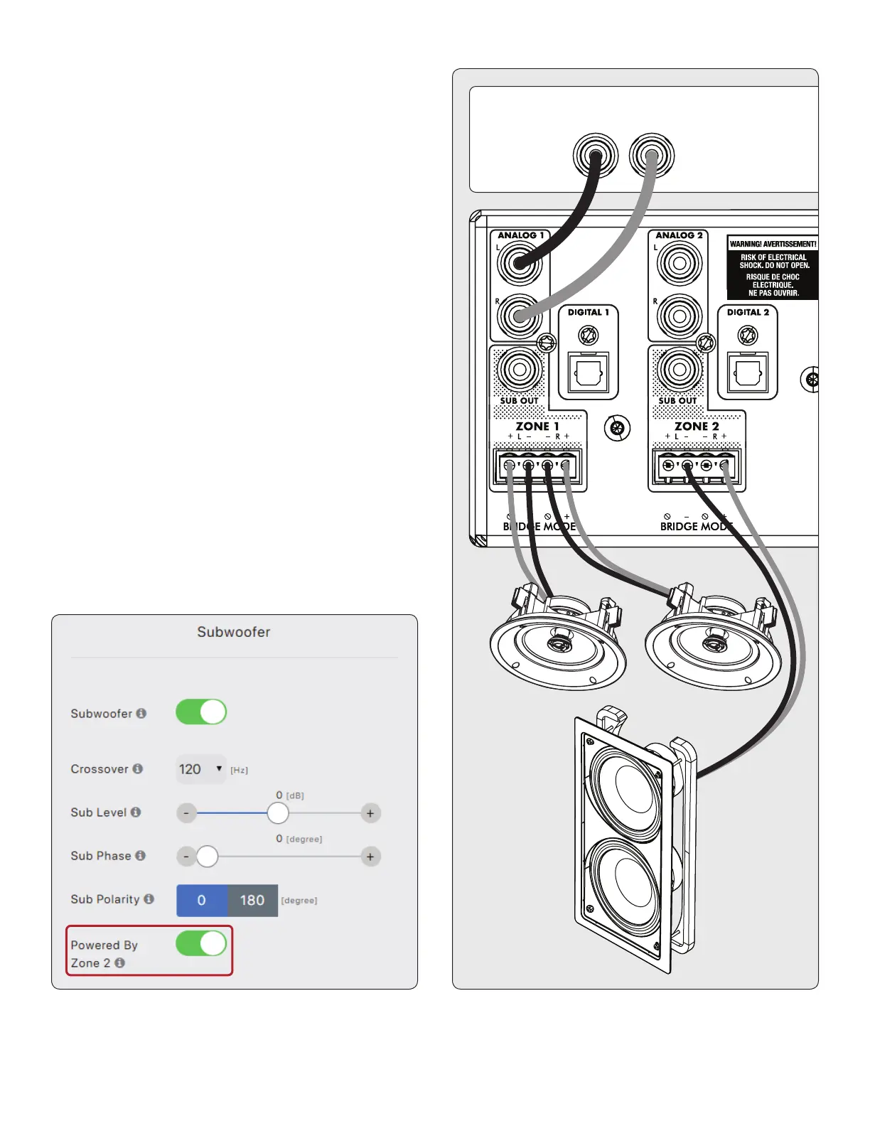the Zones > Subwoofer menu and then enable Powered by Zone