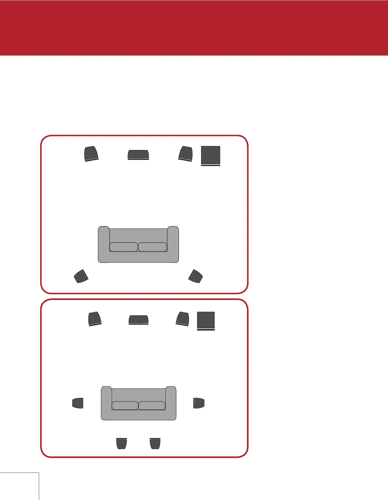 The illustrations below show typical 5.1 and 7.1-channel speaker placement.
