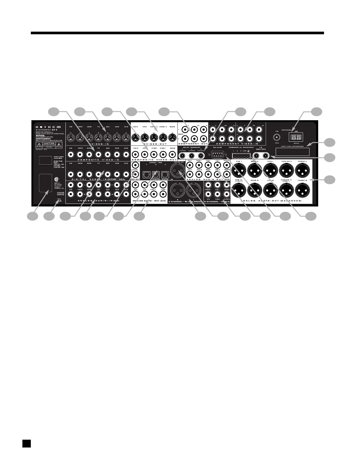 The rear panel of the Statement D1 contains all connections, such as power connection, audio and video inputs and outputs,