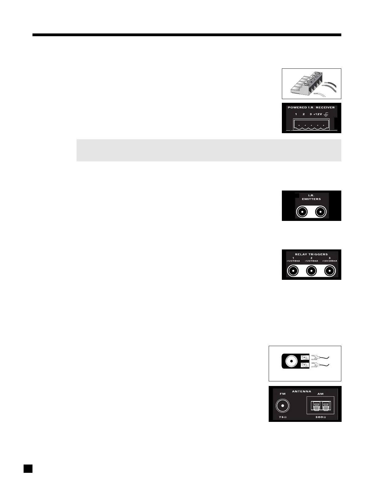 three I.R. RECEIVER inputs through the removable terminal block. To use the