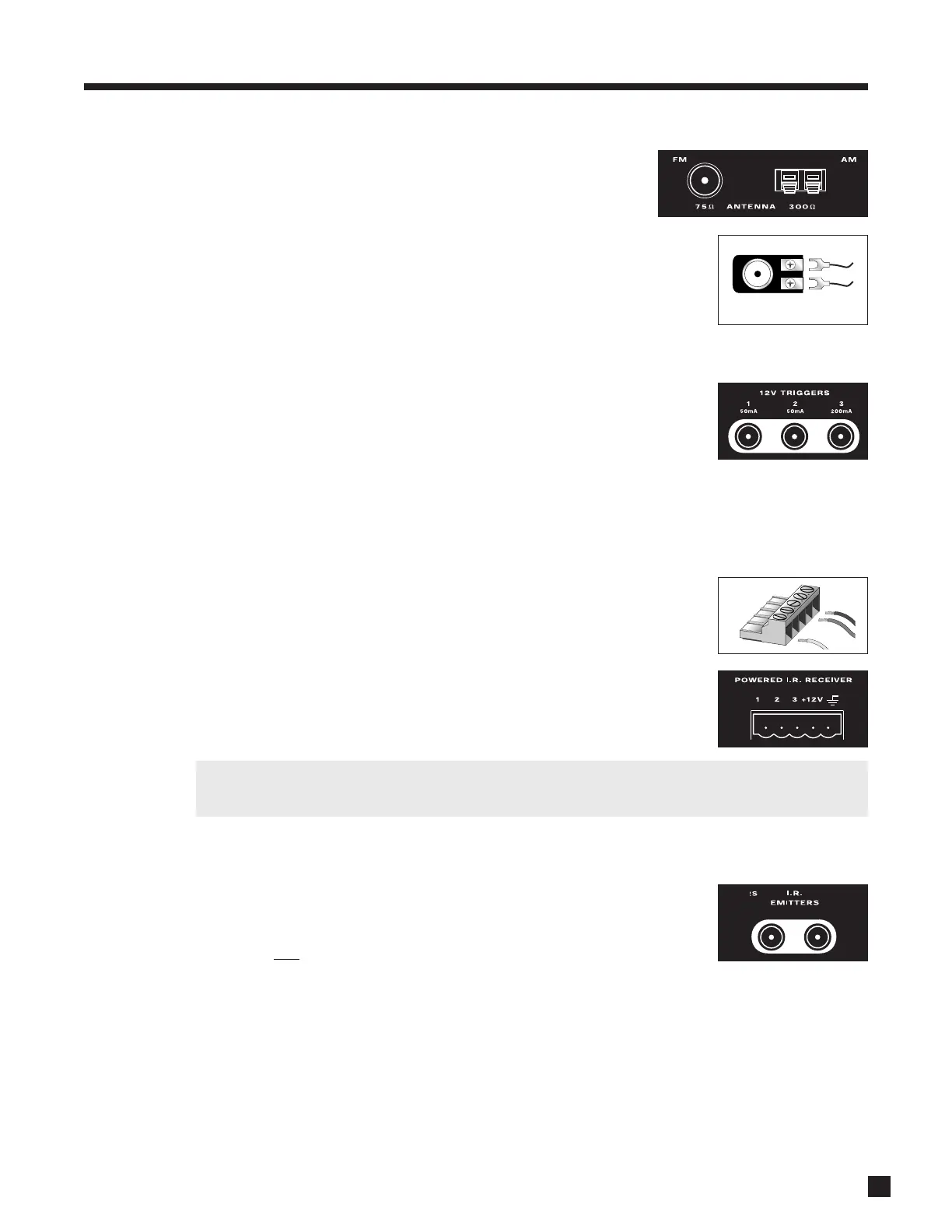 three IR RECEIVER inputs through the removable terminal block. To use the