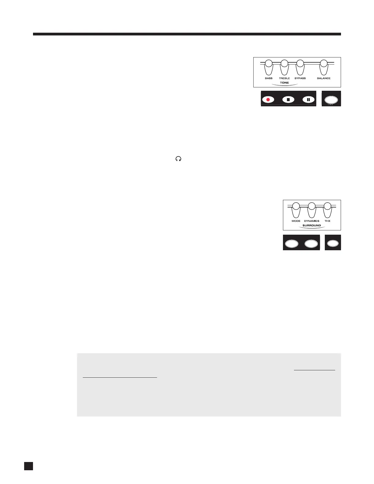 • HEADPHONE: Press FRONTS• twice, press BASS, TREBLE, or BALANCE, then adjust.