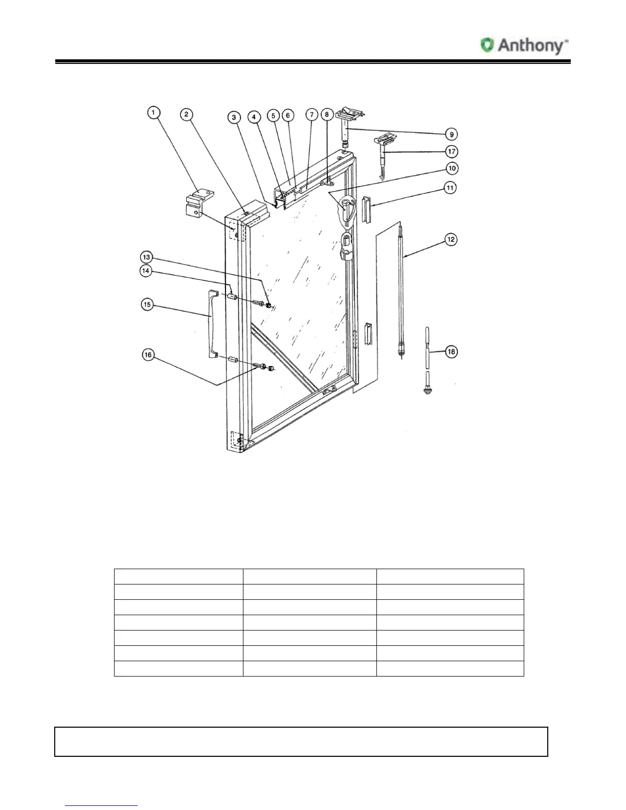 5. Single hinge side Access Hole in center of Hinge Rail only. Delete #11.
