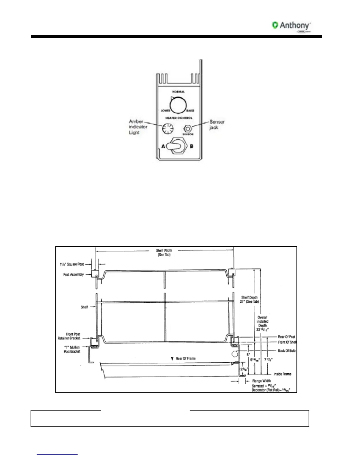ANthony 103 - Model 101 Humastat; Model 101 & 2100 Shelf Assembly Catalog Size;Shelf Size