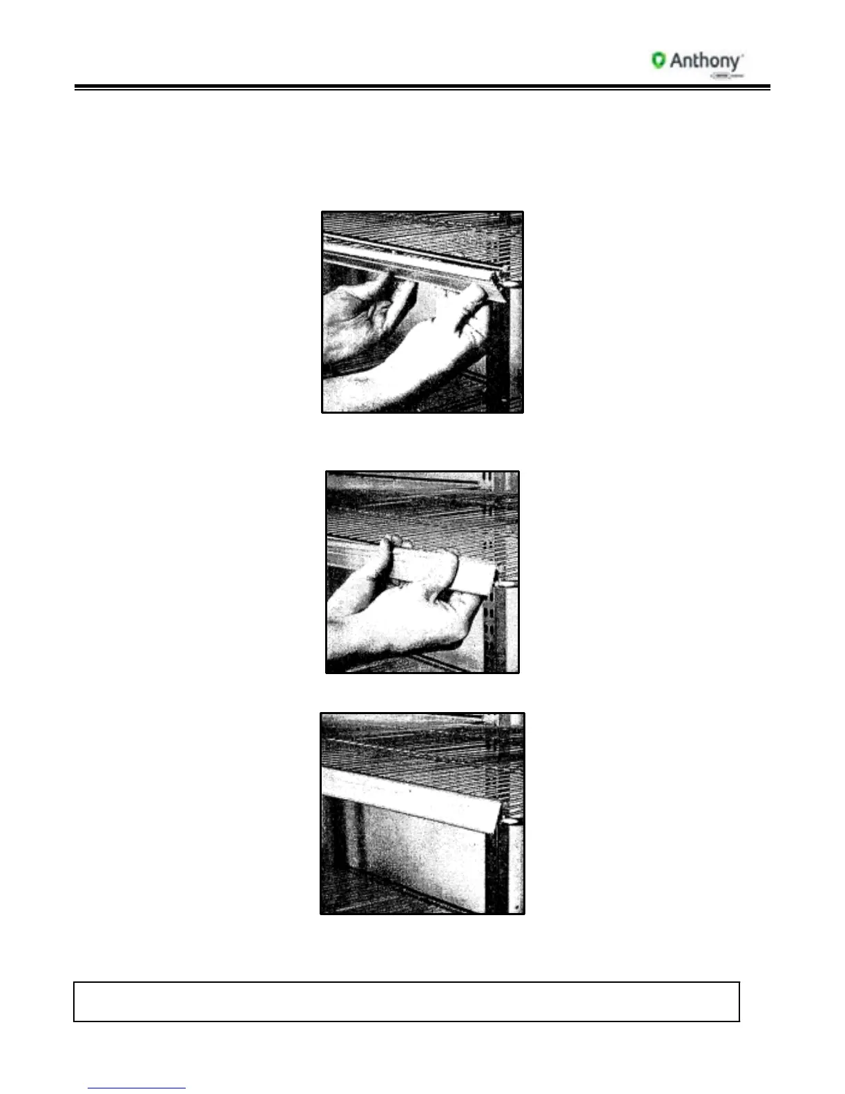front of shelf. Hook bottom of tag molding under shelf across entire width of shelf.
