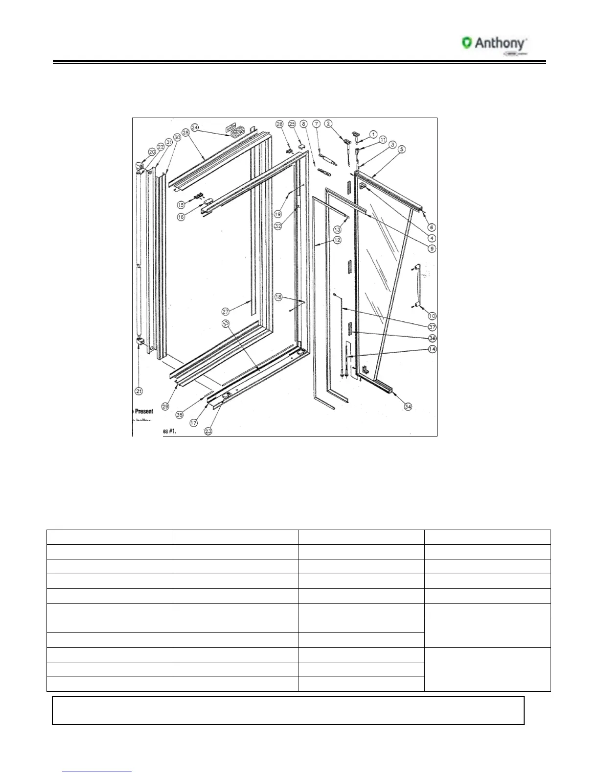 4. Single hinge side Access Hole in center of Hinge Rail only. Delete #36.