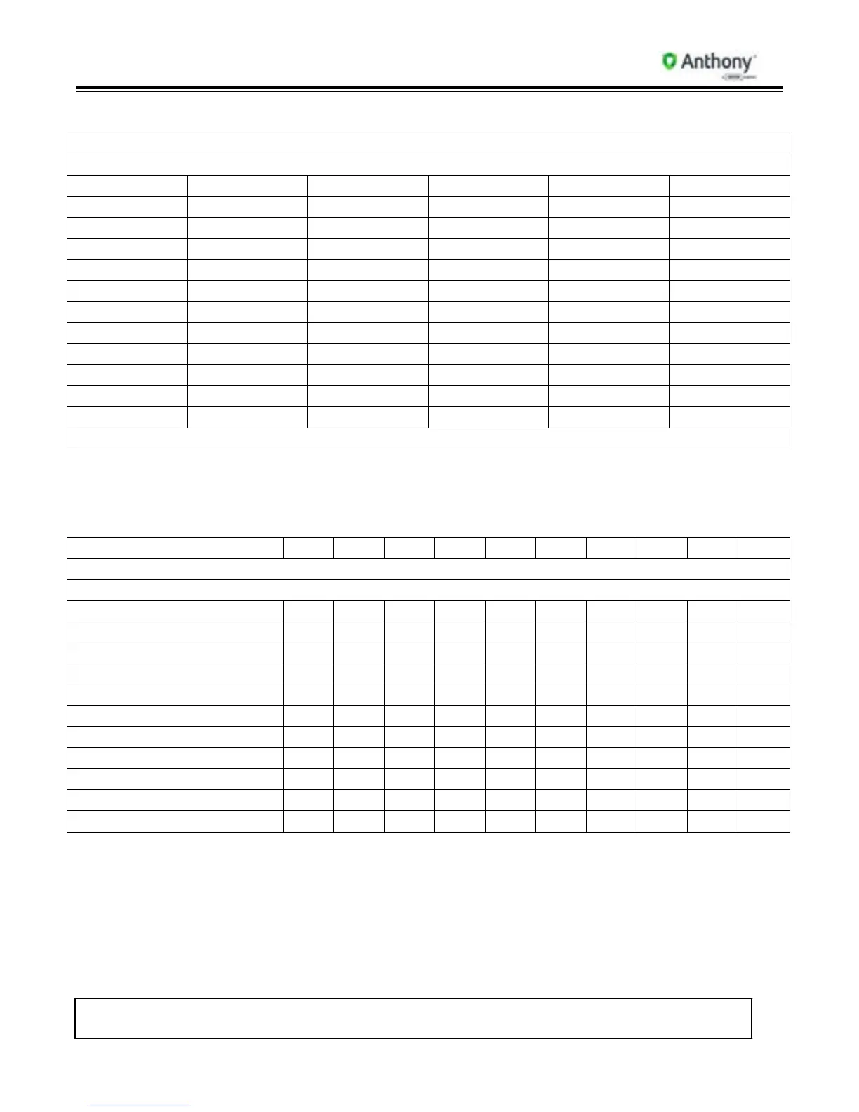 ANthony 103 - Electrical Information for Model 2100 Low Temp Doors, Frames & ELS Electronic Lighting System Heater Amperages @ 120 Volts