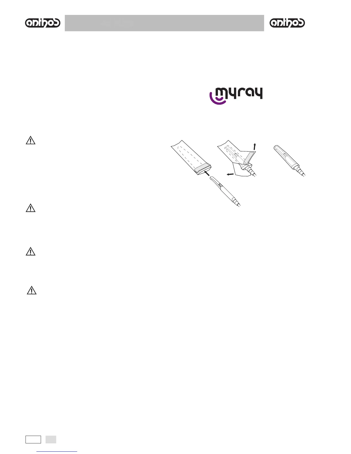• The intraoral camera is not designed for cold sterilization by being soaked, for example in solutions such as glutharaldeide or hydrogen peroxide.