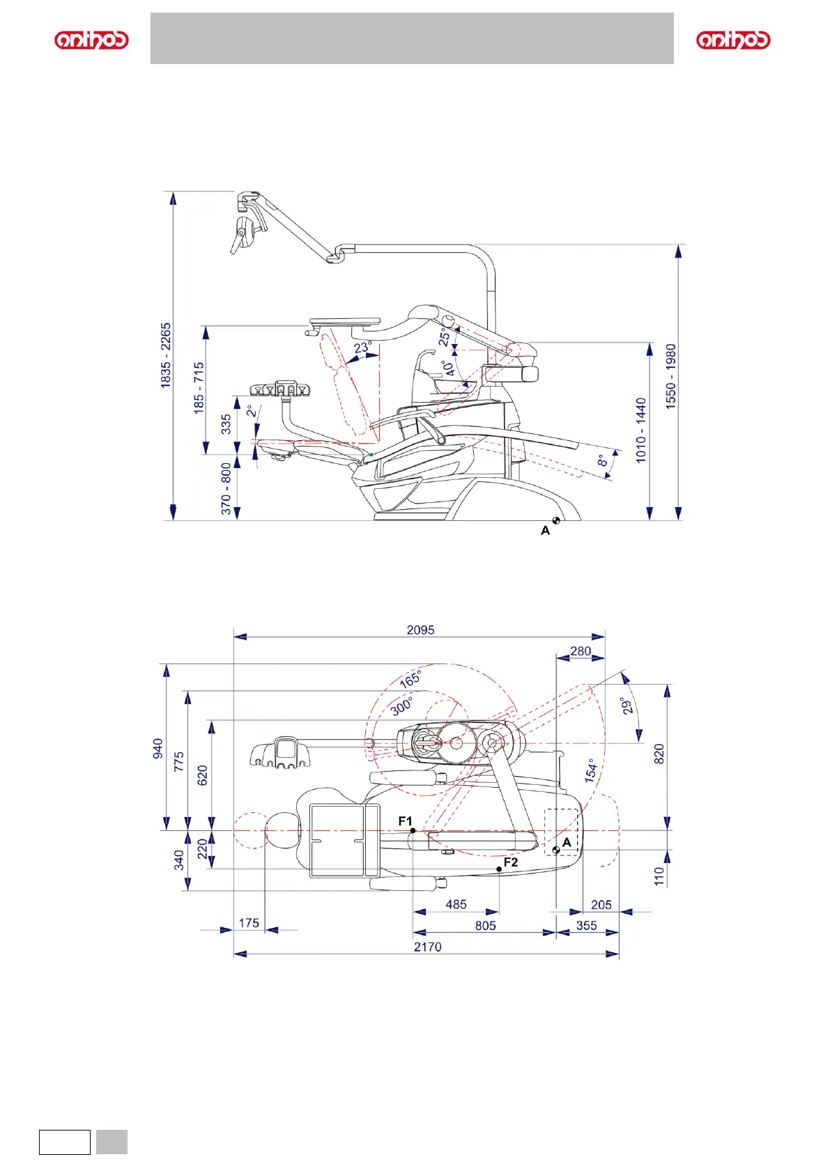 Anthos A3 Plus - Dimensional Characteristics of A5 Single Water Unit Model