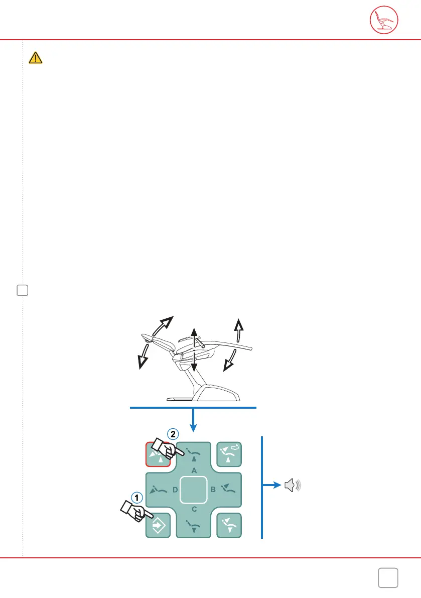 - Knoppen voor het bewegen van de behandelstoel: door een willekeurige knop voor het bewegen van de behandelstoel te activeren, zullen alle bewe-