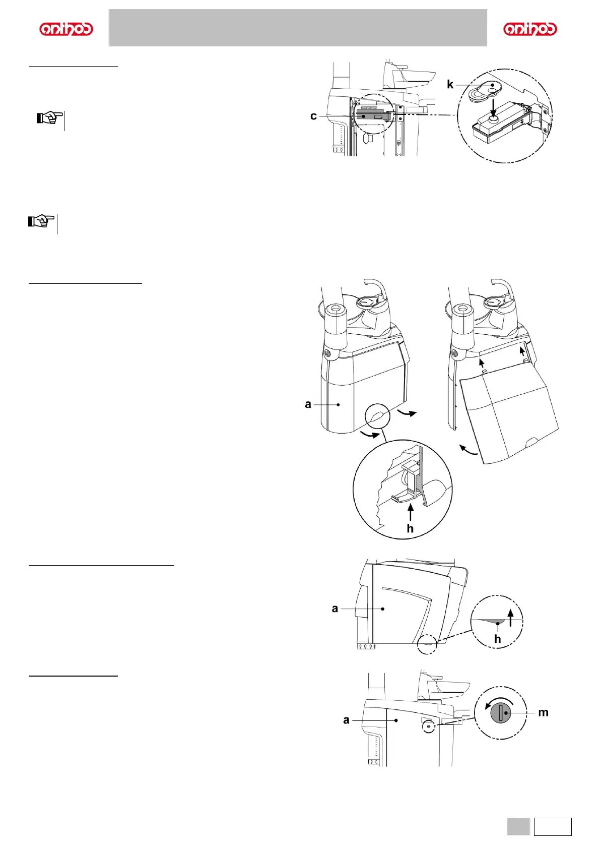 • Close the cover until you feel the mechanical locking of the handle (h).